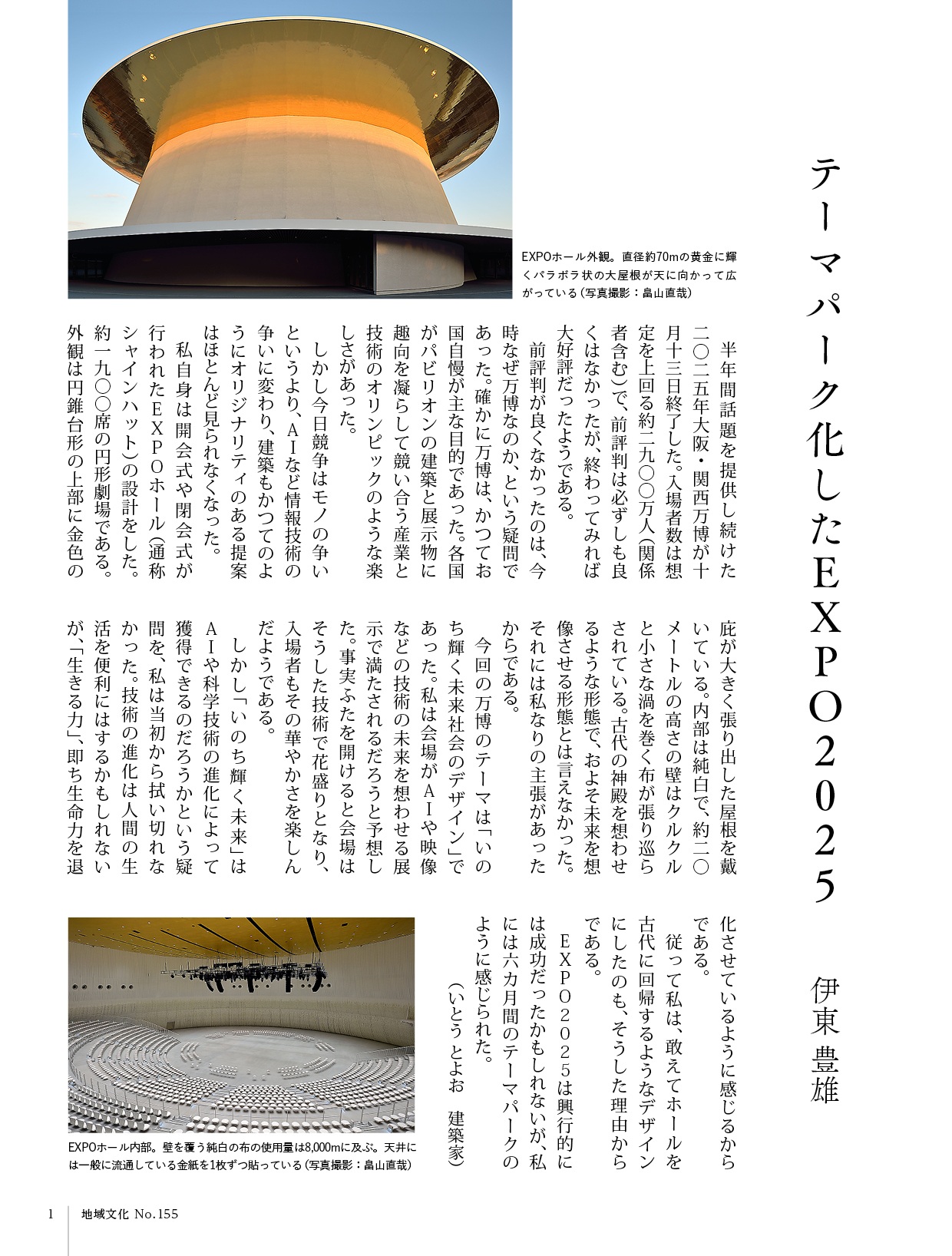 巻頭 「テーマパーク化したEXPO2025」/伊東豊雄(建築家)