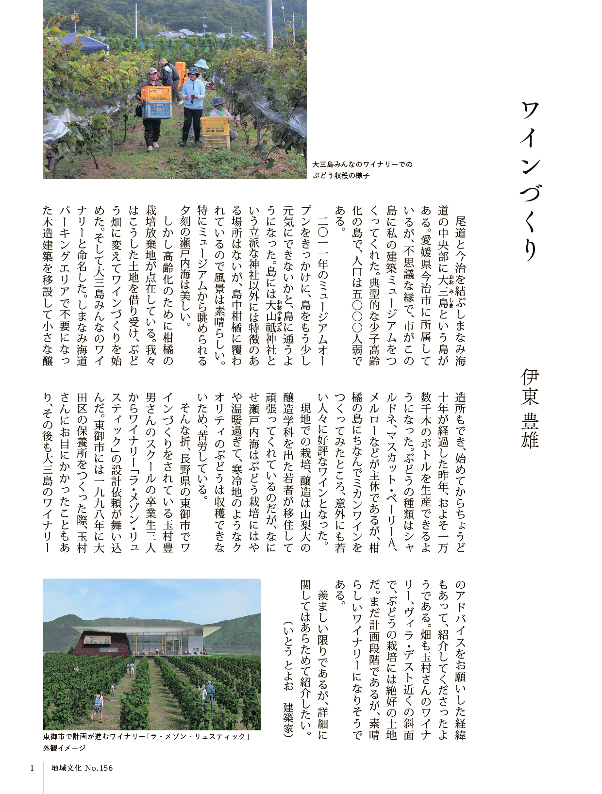 巻頭 「ワインづくり」/伊東豊雄(建築家)